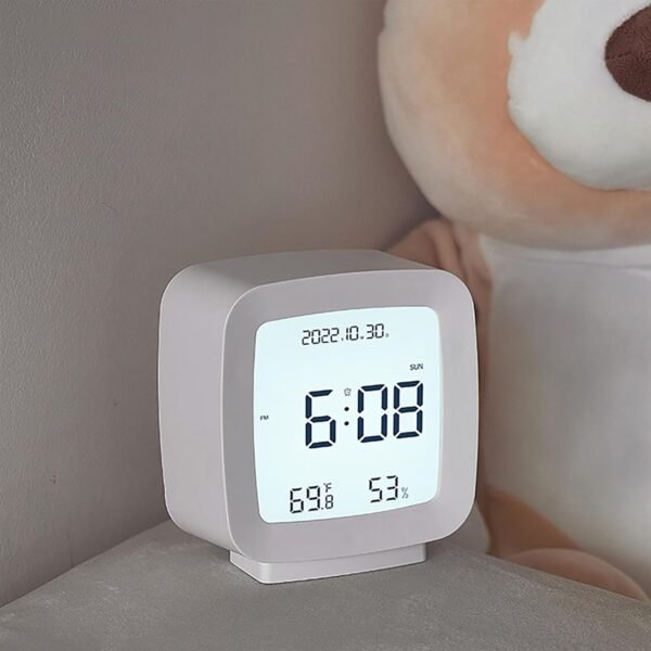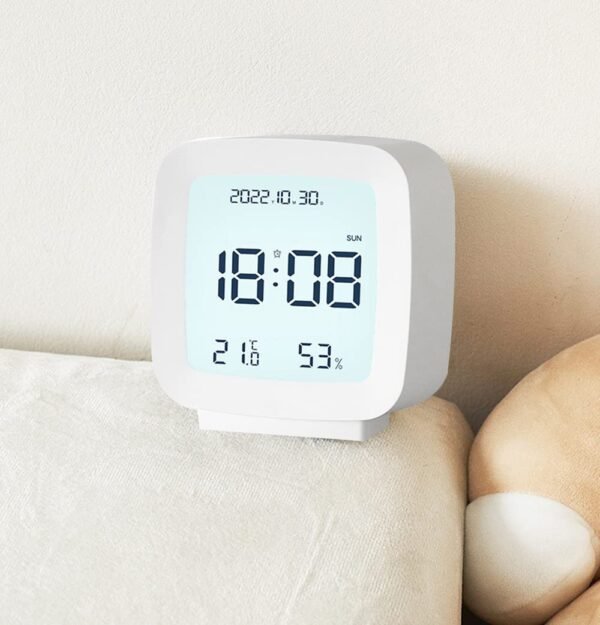 This multifunctional clock goes beyond just showing the time. It offers a built-in temperature and humidity monitor, calendar display, and an alarm clock to keep you organized and informed throughout your day. Its sensor backlight function ensures optimal visibility, adjusting automatically to ambient lighting conditions.