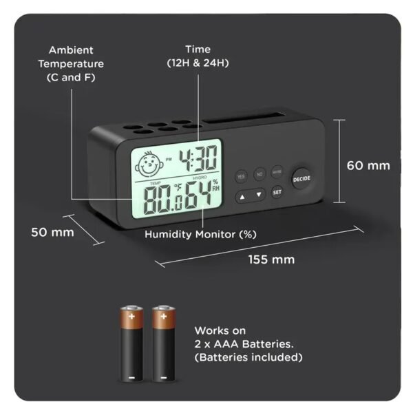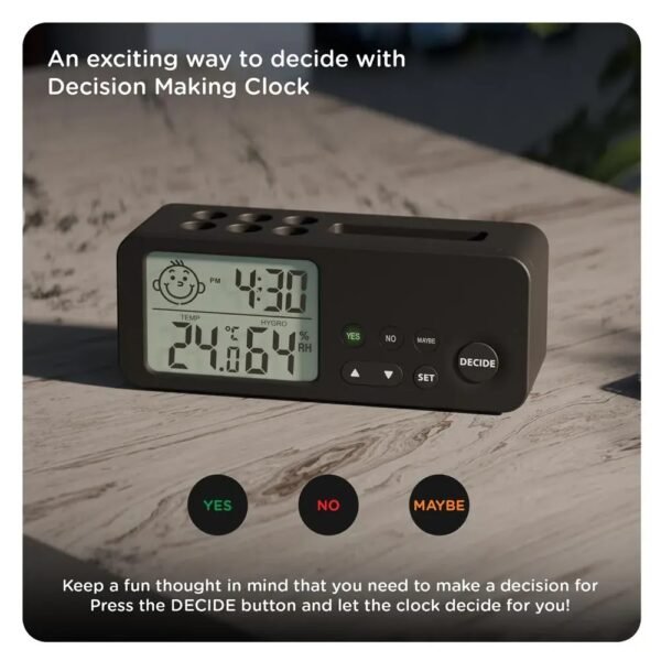• Alarm Clock with Decision Making Function: Decision Magic at Your Fingertips: Engage in a touch of excitement with our Decider. A simple press of a button reveals instant answers—Yes, No, or Maybe—adding an interactive flair to your day.