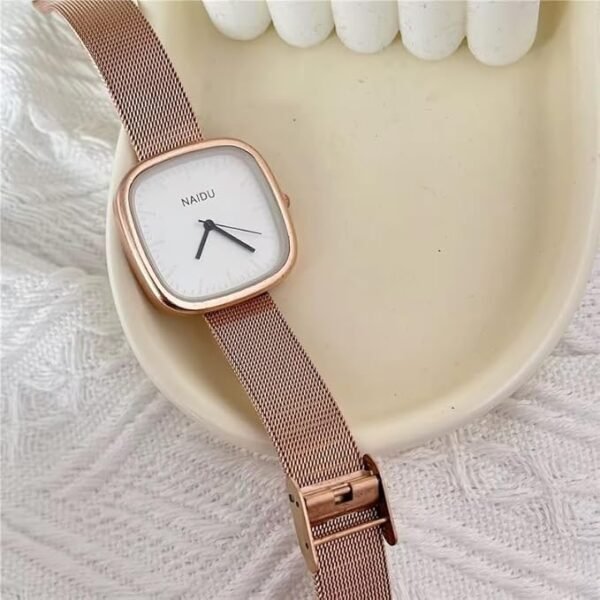 Upgrade your accessory game with this stunning Square White Dial Wrist Watch. The rose gold case perfectly complements the stainless steel mesh chain, offering a sophisticated yet minimalist vibe that suits every occasion. Designed specifically for women, this watch blends timeless style with a contemporary edge.